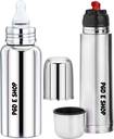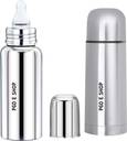 PGD Baby Feeding Bottle 300ml with Hot and Cold Milk storage Vacuum Bottle 350ml - 650 ml (Plain Silver)