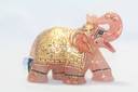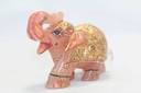 Elephant Figurine Natural Pink Rose Quartz Stone Gold Hand Painted Handmade B390