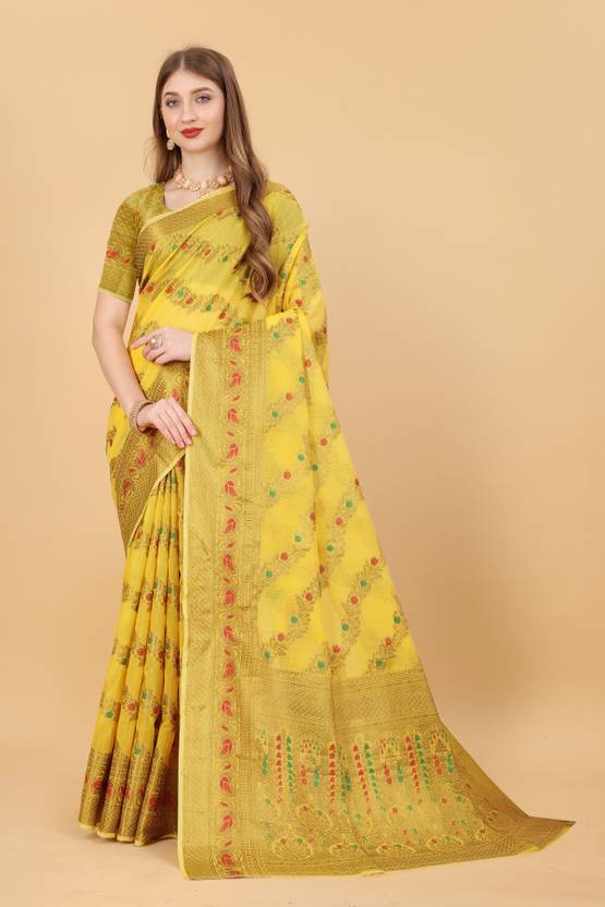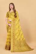 KirshnaFashion Self Design Bollywood Art Silk Saree (Yellow)