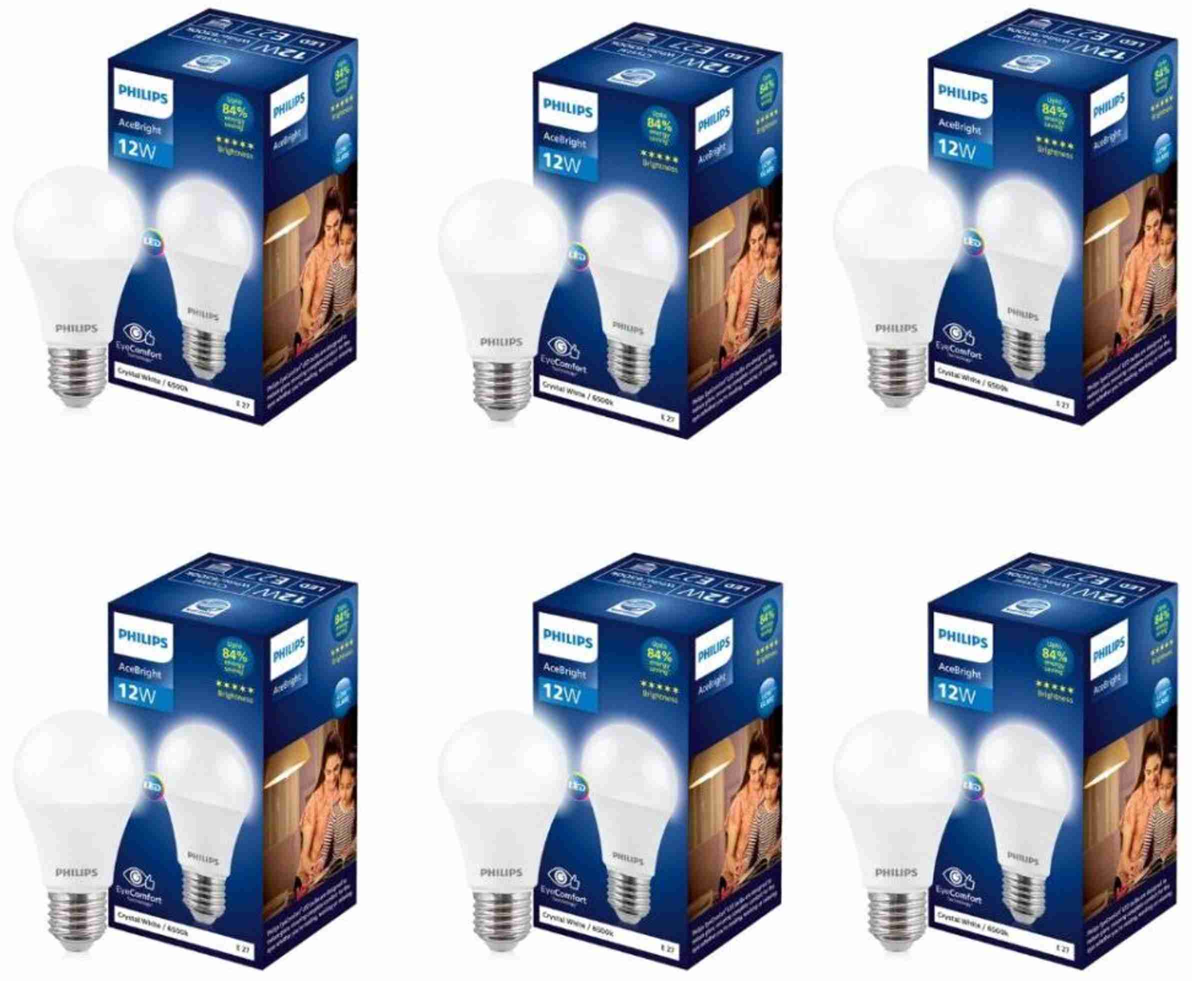 12 W Basic Round E27 LED Bulb (White, Pack of 6)