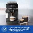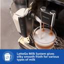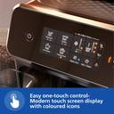 3 beverages in one touch- Enjoy 3 popular coffee recipes: from classic espresso, regular black coffee to cappuccino, with the prefect crema, aroma and temperature. Hot water for tea is also available., Easy coffee selection and customization- Easily select your favorite drinks thanks to the modern touch screen display with colored icons. Adjust your coffee your way with the My Coffee Choice function: choose your preferred coffee strength, length, and milk froth level, just to your taste, LatteGo milk system- At the touch of a button, LatteGo automatically prepares silky smooth milk froth for your milky coffees, thanks to its powerful cyclonic frothing technology, even with your favorite plant-based milk alternatives., Fastest to clean milk system ever- LatteGo is the fastest to clean milk system with only 2 parts, no tubes and can be stored in refrigerator as well