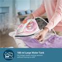 The iron provides continuous steam for better crease removal. You can get as much as 17 g/minute of steam for uninterrupted ironing of a garment.