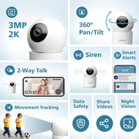 Equipped with up to 360-degree movement tracking capability, the Philips HSP3500 Security Camera offers enhanced safety for your household. So, whether your child is playing, sleeping, or roaming across the space, this Wi-Fi camera accurately records every moment. This way, it ensures comprehensive monitoring to safeguard your child's well-being and provide you with peace of mind.