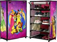 Philoshop New Collection of Printed Cartoon Shoe Rack With Velcro & Zipper Closure Metal, Plastic Collapsible Shoe Stand (Pink, 5 Shelves, DIY(Do-It-Yourself))