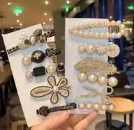 Korean Style Pearl Barrettes Marble Alligator bobby pins Pack of 11
