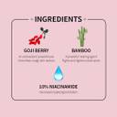 Featuring a blend of exceptional components, this brightening serum is meticulously made to provide a luxurious experience for your skin. Its primary ingredient, goji berry, is known as a superfruit for good skin and is a significant source of vitamin C, minerals, amino acids, carotenoids, and polysaccharides. And, with bamboo, this serum lets you indulge in the benefits of natural silica, an essential mineral that promotes healthy skin. Furthermore, niacinamide, also known as vitamin B3, can significantly decrease hyperpigmentation and enhance skin lightness.