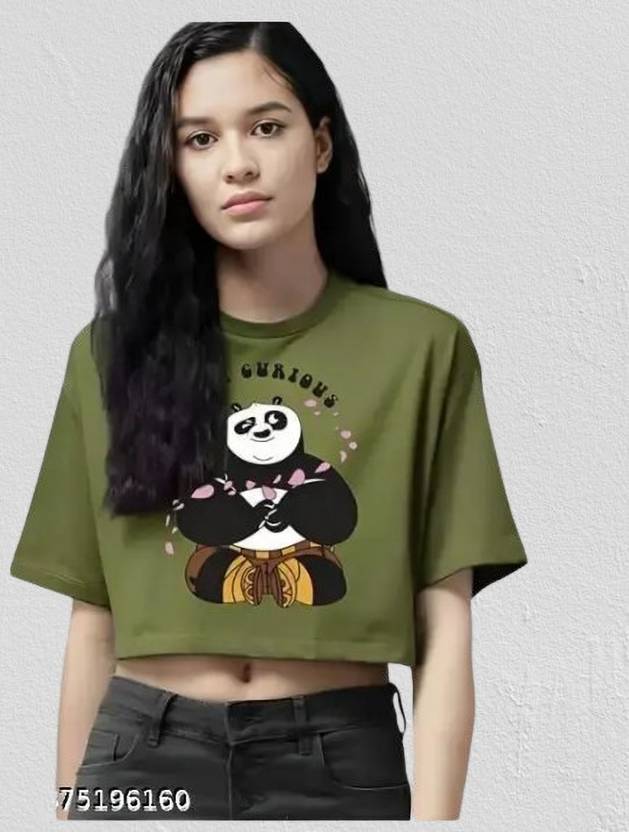 Women Graphic Print Round Neck Cotton Blend Dark Green T-Shirt