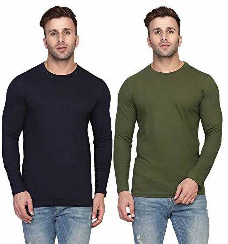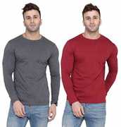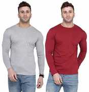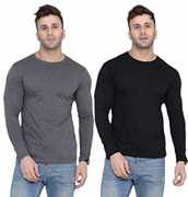 Pack of 2 Men Solid Round Neck Cotton Blend Multicolor T-Shirt