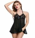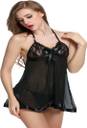 Experience the ultimate in romance and luxury with this delicate lace body and curve hugging baby doll fromPHWOAR. The embroidered and scalloped lace portrays a feminine look and the ruffled skirt gives a little more flirty touch to the already sexy babydoll!-Sheer floral embroidered lace body-Halter neck with plunging front neck-Unlined triangular cups-Flared bottom-Includes matching mesh thong-Length of the Babydoll.