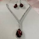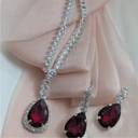 AD Ruby Stone Necklace and Earring set. Rhodium Plated Alloy Necklace Set