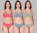 Bra & Panty Set is perfect for exercising, gym,walk ,aerobics or yoga. Soft wide straps , linning for maximum support & comfort .Modern styling with wide arm holes provides complete freedom of movement. It has a high back and full coverage which is perfect gym wear .The Fresh coloured panty has elasticized waist bands and leg hole which is comfortable. Cross back styling with wider armholes. Made of cotton elastin stretch fabric providing superior comfort and stretch. Full figure with an elasticated band that allow you to slip into them with ease and assures a firm fit.