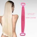 Made of food-grade silicone: Collapsible, nicely made, great quality and durable. Besides, easy to wash and dry. Scrubber with handles: The silicon back scrubber come with handles securely sewn on both sides. The straps make it much easier to reach lower back and it also make it easy to hang dry. Dual sides with different scrubbing texture pads: One is good exfoliating texture without being too rough while the other side is soft for promoting blood circulation and massage. The right dimensions: 27.56 inches in length and 4.33 inches in width. You can put body wash on the silicone bath towel and move it across the back in both directions easily and effectively. The back scrubber can make your bathing time to be the most relaxting time of the day. Give it a shot, and you will love it.