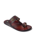 Make a comfy addition to your shoe collection with these eye-catching sandals. Style them with a jacket kurta, jeans, and flashy gemstone drop earrings.