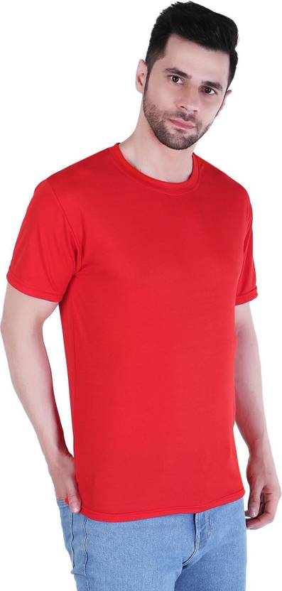 PICKURTEE Men Solid Round Neck Polyester Red T-Shirt