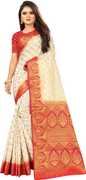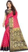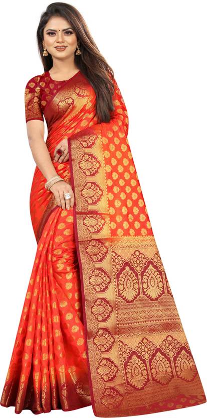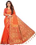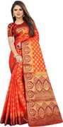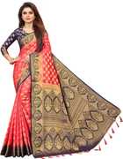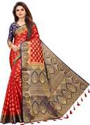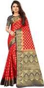 PICKWELL Self Design Banarasi Cotton Silk Saree (Red)