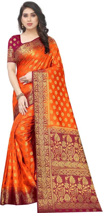 PICKWELL Woven Banarasi Cotton Silk Saree (Multicolor)