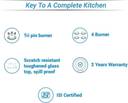 Pigeon glass cooktops are equipped with strong brass burners which ensure an even flame distribution for a consistent heating.