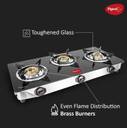 Pigeon Ayush 3 Burner Cooktop Glass Manual Gas Stove (3 Burners)