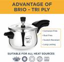 Pigeon Brio Triply Pressure Cooker- 5 Litre 5 L Outer Lid Induction Bottom Pressure Cooker (Stainless Steel)