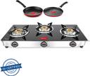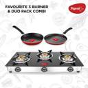 Pigeon Combo - Ultra + Flat Tawa 250 + Fry Pan 200 Stainless Steel Manual Gas Stove (3 Burners)