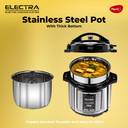 This pressure cooker is crafted from high-quality stainless steel, giving it a sleek and stylish appearance. The robust construction ensures durability, resisting rust and corrosion even with regular use. The stainless steel body also makes the cooker easy to clean and maintain, ensuring it stays looking new for longer. This further ensures your pressure cooker will withstand the test of time, providing you with reliable performance for years.