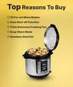 Equipped with 18 pre-set menu modes, this pressure cooker makes cooking a variety of dishes simple and convenient. You can easily prepare curries, rice, idli, cake, slow-cooked meals, steamed vegetables, sauteed dishes, and much more with just the touch of a button. These pre-set modes take the guesswork out of cooking, ensuring consistent and delicious results every time.