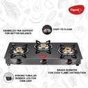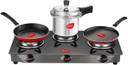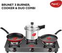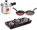Pigeon Gas Stove Combo - Brunet 3 Burner Gas Cooktop + Aluminium Pressure Cooker 3 Litre + Flat tawa 250 + Fry Pan 240 Stainless Steel Manual Gas Stove (3 Burners)