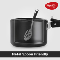 With an ergonomically designed handle that ensures better grip and support, the Pigeon Titanium Induction bottom pressure cooker is thermally efficient and helps you cook your faster and in a uniform manner. With a hard anodised body, metallic safety plug, precision weight valve and more this gas and induction bottom pressure cooker is non-toxic, stain-resistant as well as a corrosion-resistant kitchen appliance.