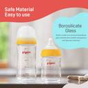 Pigeon Wide Neck 3 Glass baby feeding Bottle With Nipple - 240 ml (Yellow)