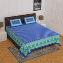 Pik Oops Cotton Double Flat 144 TC Jaipuri Prints Bedsheet (Pack of 1, Blue)