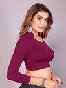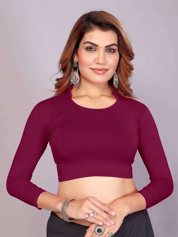 A comfortable and stretchy blouse made from lycra fabric, offering a snug fit and full coverage with long sleeves. These blouses are popular for their versatility and ease of wear, suitable for various occasions like sarees and lehengas. They are known for being easy to slip on and off, making them a convenient and stylish choice.