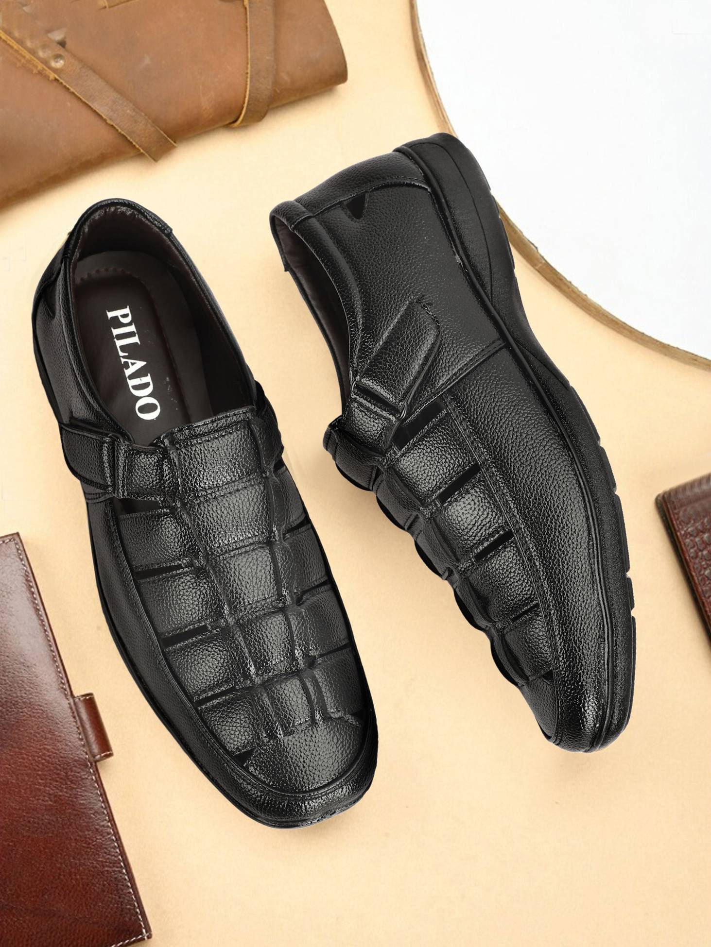 The PILADO Men's Ultra Light Breathable Synthetic Leather Hook and Loop Sandal offers rich quality, adjustable fit, and all-day comfort with a lightweight, ventilated design perfect for casual wear.
