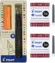 PILOT Kakuno Fountain Pen (Orange - M) + 12 Black Cartridges Fountain Pen (Pack of 3, Ink Color - Black)