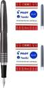 PILOT Metropolitan Fountain Pen (Grey - M) + 12 Blue Cartridges Fountain Pen (Pack of 3, Ink Color - Blue)