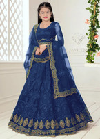PILUDI Girls Lehenga Choli Ethnic Wear Embroidered, Embellished Lehenga, Choli and Dupatta Set (Blue, Pack of 1)
