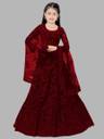 PILUDI Girls Lehenga Choli Ethnic Wear Embroidered Lehenga, Choli and Dupatta Set (Maroon, Pack of 1)