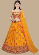 PILUDI Girls Lehenga Choli Ethnic Wear Embroidered Lehenga, Choli and Dupatta Set (Yellow, Pack of 1)