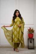 Kurti Fabric: Viscose Rayon Soft, breathable, and lightweight Comfortable for all-day wear Good drape and smooth texture, Pant Fabric: Viscose Rayon Matching or contrasting with kurti Elasticated or drawstring waist for comfort Straight cut or tapered style, Dupatta Print: Digital floral, abstract, ethnic, or modern print, Pant Fabric: Viscose Rayon, Dupatta Fabric: Lightweight blend