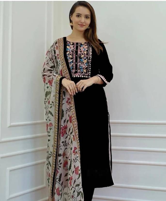 Precise attractiveness comes out of your dressing style with this chanderi and viscose salwar suit. The ethnic embroidered and printed work within the attire adds a sign of splendor statement for the look. Comes with matching bottom and dupatta. (Slight variation in color, fabric & work is possible. Model images are only representative.)
