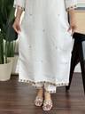 The kurti features a graceful silhouette with delicate design details, complemented by matching straight-cut pants that enhance the overall look. The highlight of this set is the vibrant digital print dupatta — lightweight, stylish, and adorned with eye-catching patterns that add a splash of color and sophistication.