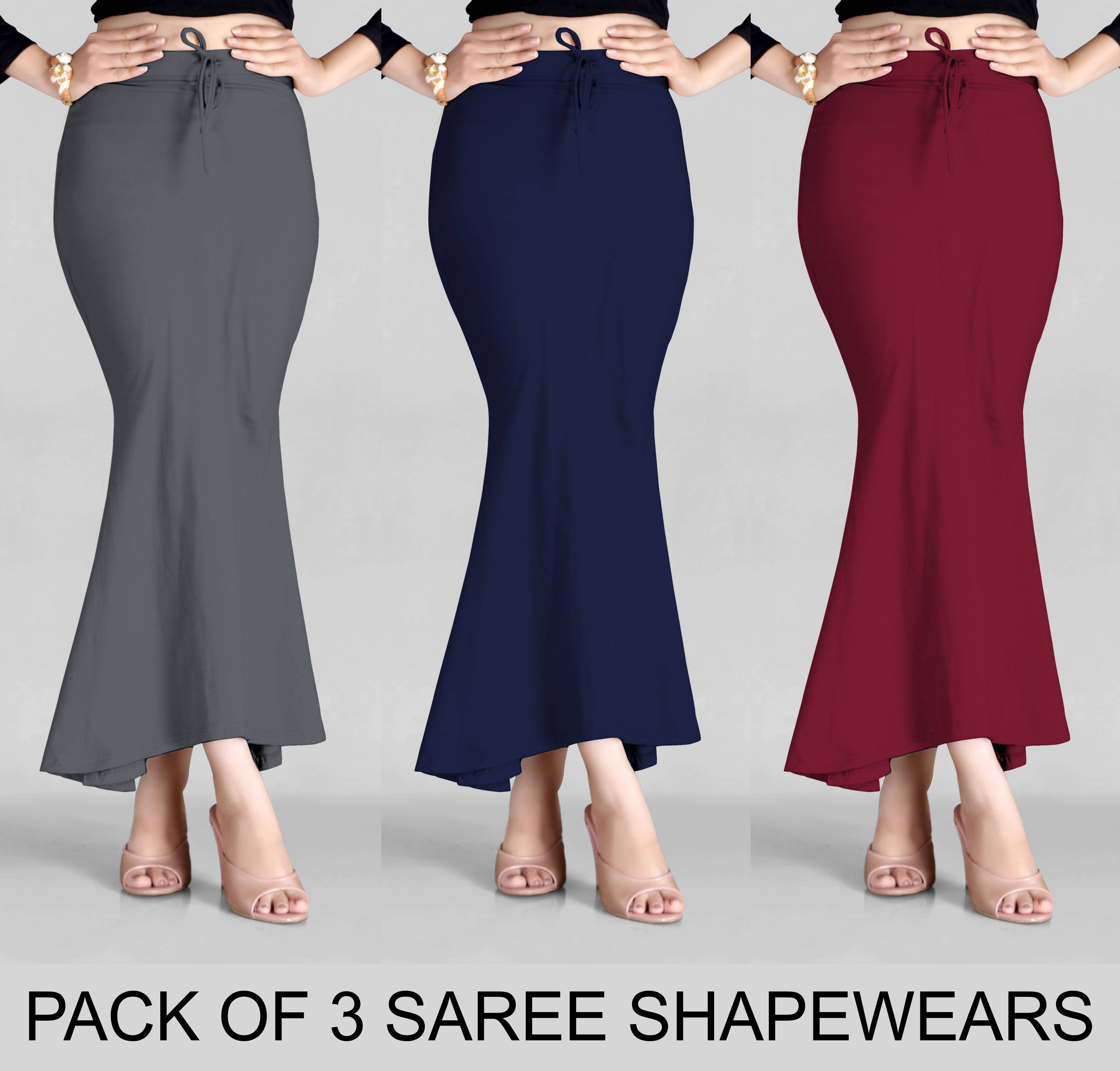 Instructions: Hand Wash, Machine Wash • FABRIC: Our saree silhouette is made from a high-quality stretchable polyester-lycra fabric which is very soft, breathable, non-allergic, and skin-friendly. • It is not a compress wear but a comforts wear • It Cannot Only Be Used For Sarees But For Other Outfits Like Lehengas And Gowns As Well • This Saree Silhouette is designed for hug close to your body and it allows the Saree to follow the figuration of your legs and gives you the perfect curvy look • EASY MOVEMENT: The Mermaid/fishtail design has more circular fabric at the bottom, so, now you can walk very easily and you can feel comfortable even sitting cross-legged • DRAWSTRING & ELASTIC : silhouette comes with a removable drawstring and high-Quality Elastic at waist round which will never be loose and hold the saree right exactly where you want product is super comfy and is made out of super smooth skin friendly fabric which goes along with any saree material. It allows the saree to follow the couture of your curves and gives you the perfect drape experience. The composition of the fabric is 20% Lycra which is highly stretchable and it has a slit at the bottom which allows you to walk, jump, run and also sit cross legged with ease. Our shapewear can be used along with sarees, lehengas, long gowns and can also be worn as a western skirt which can be paired up with any crop top. We have sizes S, M, L, XL, XXL 3XL Petticoat Shapewear For Saree. This Black Color Saree wear shaper made of Lycra Fabric and dyed work which Targeted compression to smoothen out abdomen, thighs and back with side slit which allows you to walk comfortably, sit cross-legged and dance with easy movement. It comes in 6 different waist sizes. (kindly follow size chart for a perfect fit )