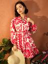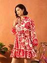 Pink Paprika By SASSAFRAS Women Fit and Flare Red, White Above Knee/Mid Thigh Length Dress