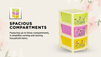 Pinkwhale 3 Compartments Plastic Printed Modular Drawer (Multicolor)