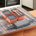 Pinkwhale New Rectangular Classy 3 Section With 1 Spoon & 1 Fork 3 Containers Plastic School Lunch Box (1500 ml)