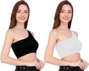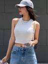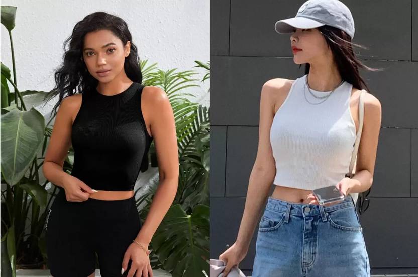 BRAND - PINOVO The model (height 5'7") is wearing a size M Sleeveless one shoulder rib-knit plain crop cami tank top. Fabric has some stretch is comfortable and soft to wear.Casual tank top easy to dress it up with variety of jeans, skirts, shorts and jeggings. Make a statement with this knit top featuring a one-shoulder neckline, sleeveless, and a crop straight closure at the hem. This casual yet chic top would look perfect paired with a denim mini skirt, round sunglasses, and ankle booties.