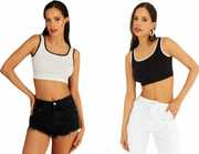 BRAND - PINOVO The model (height 5'7") is wearing a size M Sleeveless one shoulder rib-knit plain crop cami tank top. Fabric has some stretch is comfortable and soft to wear.Casual tank top easy to dress it up with variety of jeans, skirts, shorts and jeggings. Make a statement with this knit top featuring a one-shoulder neckline, sleeveless, and a crop straight closure at the hem. This casual yet chic top would look perfect paired with a denim mini skirt, round sunglasses, and ankle booties.