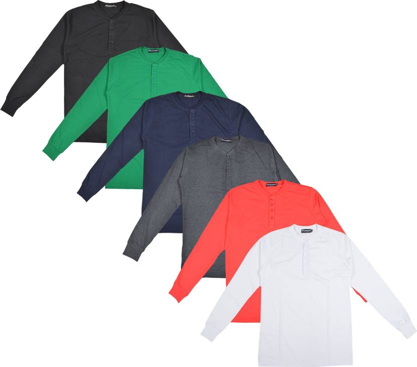 Pintapple Pack of 6 Men Solid Henley Neck Cotton Blend Dark Blue, Red, Green, White, Black, Grey T-Shirt