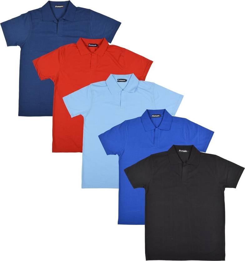 Pintapple Pack of 5 Men Solid Polo Neck Cotton Blend Dark Blue, Light Blue, Red, Blue, Black T-Shirt