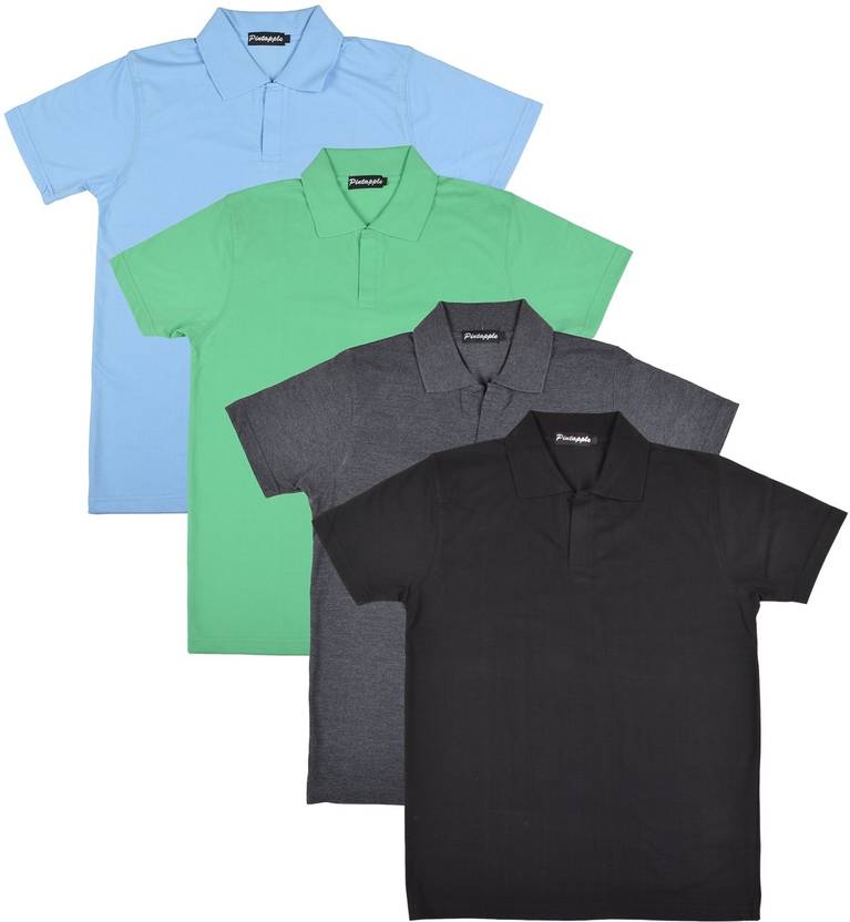 Pintapple Pack of 4 Men Solid Polo Neck Cotton Blend Light Blue, Black, Grey, Light Green T-Shirt