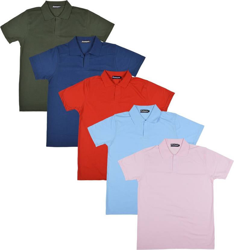 Pintapple Pack of 5 Men Solid Polo Neck Cotton Blend Dark Blue, Light Blue, Dark Green, Red, Pink T-Shirt